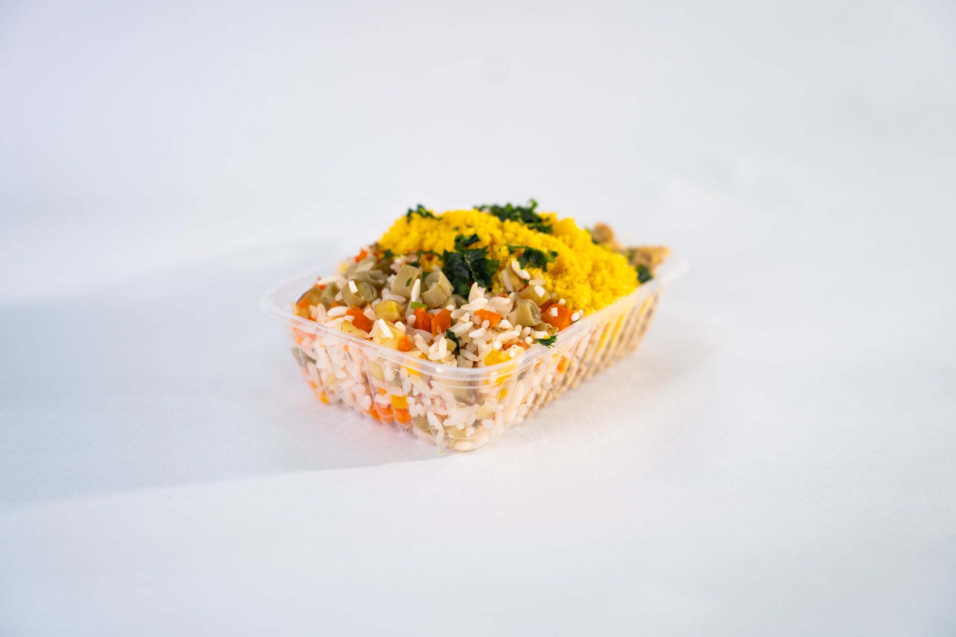 1️⃣ Acompanhamento Arroz Natalino: Arroz parbolizado, vagem , cenoura , batata doce, pimentão amarelo, tomate italiano acompanhado de uma farofa dourada de milho