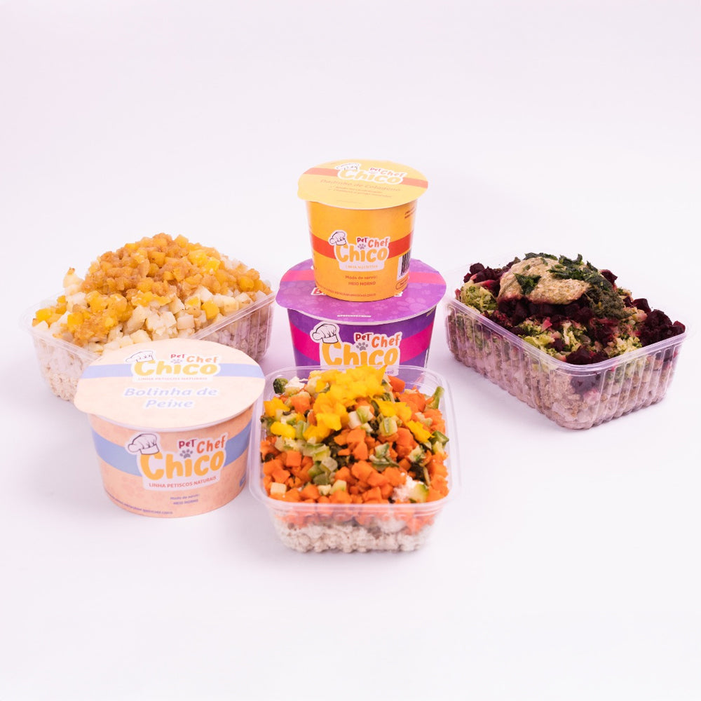 O Kit Degustação Saudável foi pensado para tutores que querem apresentar ao pet o universo da alimentação natural Pet Chef Chico — com sabor, nutrição e muito amor!