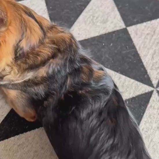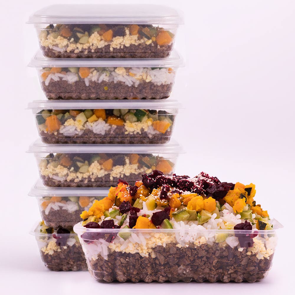 🥩 Carne: Músculo, fígado bovino, coração bovino, ovo de galinha, arroz branco, farelo de aveia, abobrinha, abóbora cabotiá, beterraba, óleo de girassol, azeite de oliva extra virgem e suplemento.